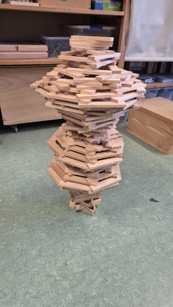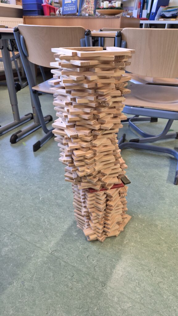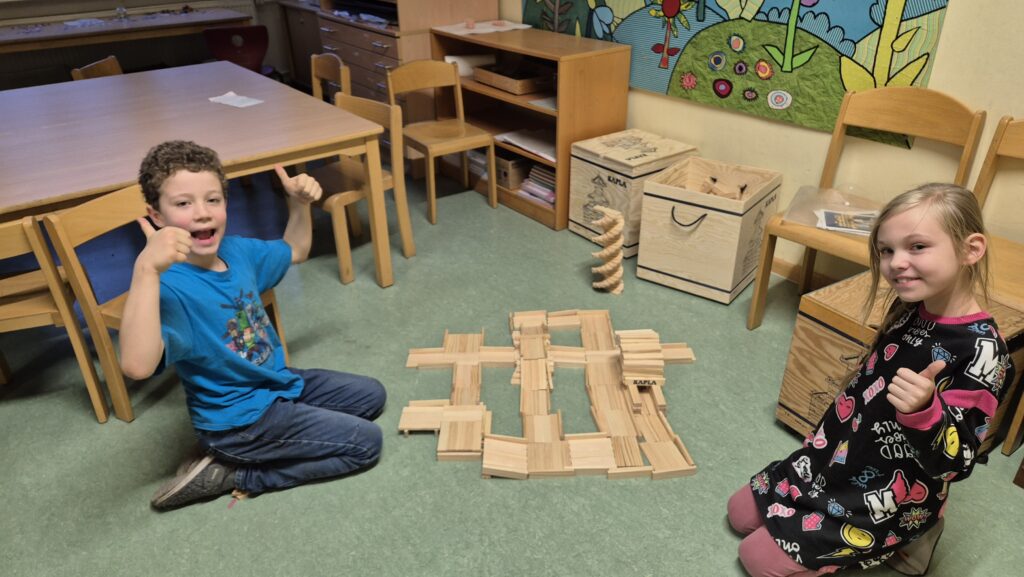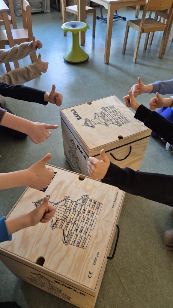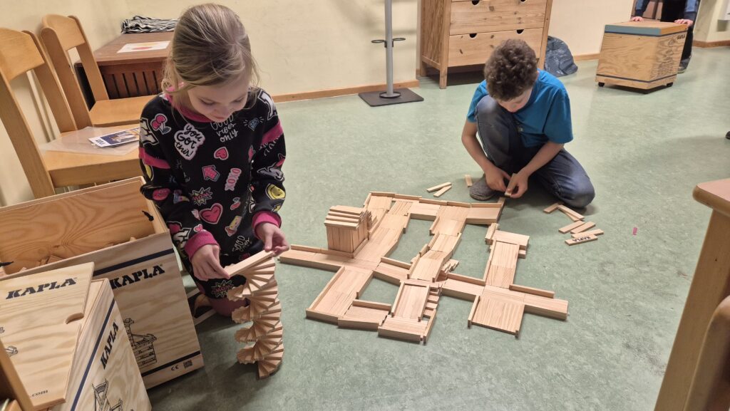 Die neuen Kapla‑Steine sind inzwischen fest im Alltag angekommen. Die Kinder nutzen sie mit großer Begeisterung für fantasievolle Bauwerke, hohe Türme, stabile Brücken und ganze Landschaften. Dabei entstehen immer wieder neue Ideen – oft gemeinsam, manchmal auch ganz konzentriert für sich allein.